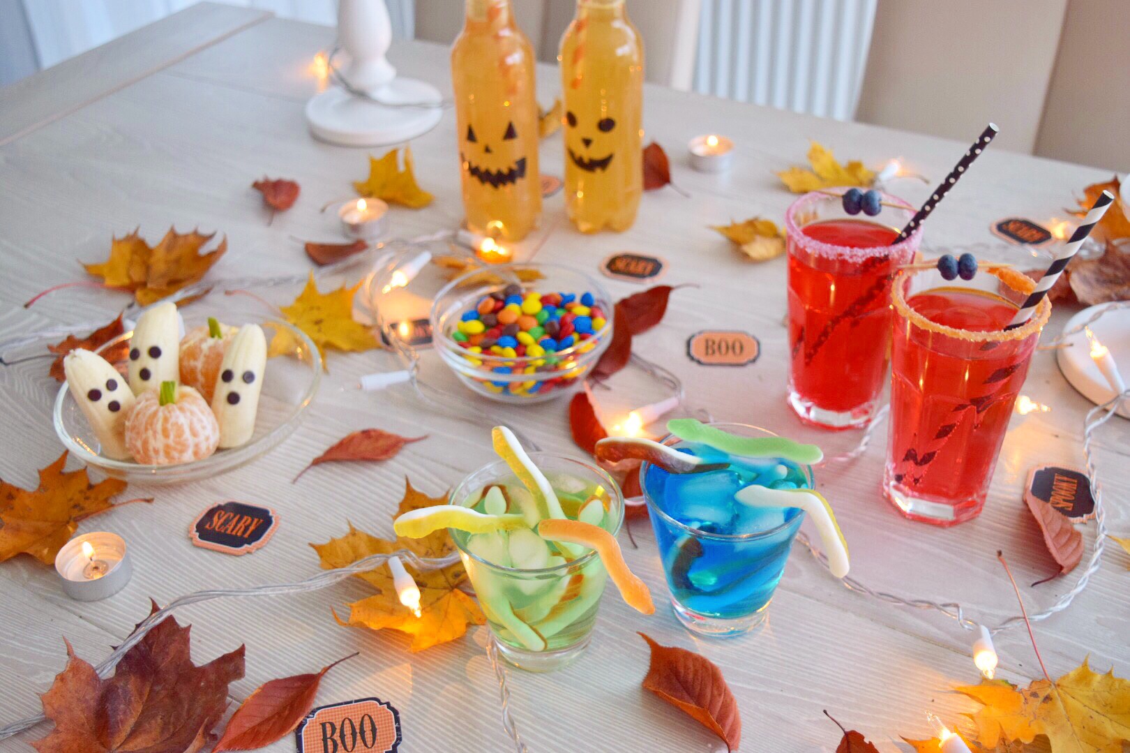 Alles was ihr für die Halloween Getränke und Snacks benötigt ist: