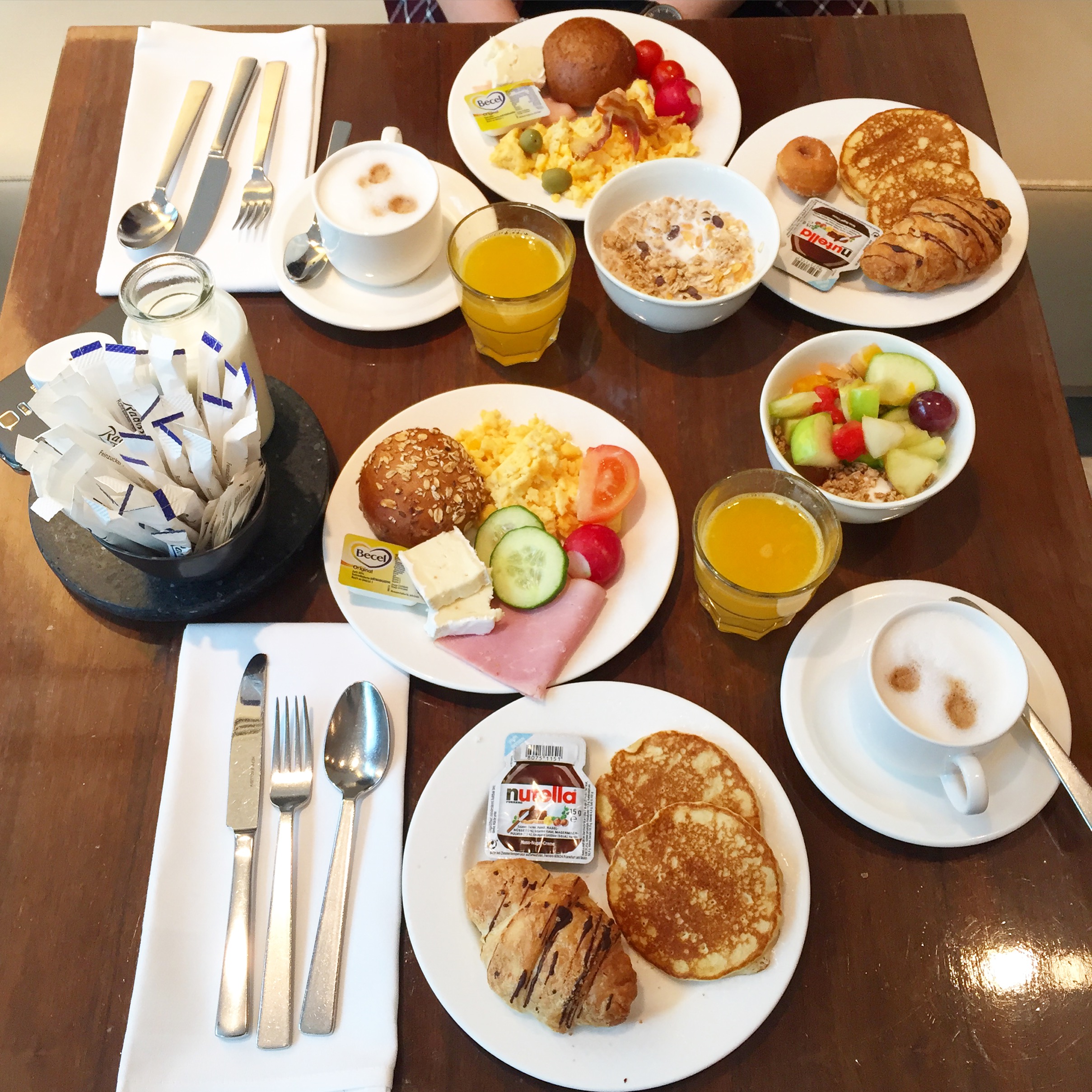 Am Samstag sind wir relativ früh aufgestanden sodass wir noch etwas vom letzten Tag haben. Also haben wir uns früh gerichtet unsere Koffer wieder fertig zusammen gepackt und sind dann zum Frühstück. Ich hatte noch nie so eine große Auswahl beim Frühstück, es war ein Traum! Ich hatte euch bei Snapchat (jeennny19) einen kleinen Eindruck gegeben. Am meisten war ich von dem Koch fasziniert der für jeden individuell nach Wunsch Omelett gemacht hat. Nach dem leckeren Frühstück sind wir danach noch in die Innenstadt und die ‚berühmte‘ Einkaufsstraße Zeil und in dessen dazu gehöriges Einkaufszentrum. In dieser Straße fehlt nichts 😀 Nach dem Stadtbummeln haben wir noch lecker Waffeln gegessen bei Wonder Waffel. Dies kann ich euch ebenfalls sehr ans Herz legen sehr preiswert und schmeckt super!